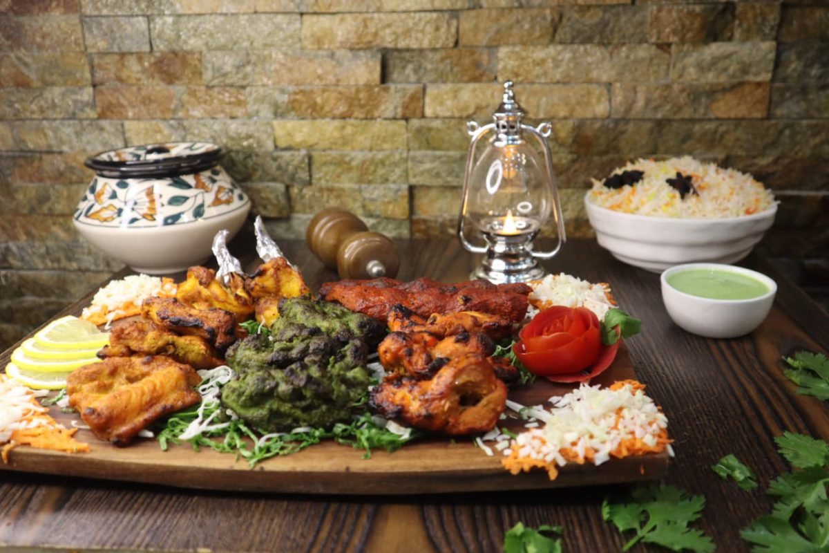 Tandoori Chicken, Chicken Pahadi Kebab, Bhatti d a Murg Tikka, Joshila Murg Tikka, Makhmali Malai Murg Tikka, Lamb Seekh Kebab, Jumbo Jinga, saundhi Fish Tikka, Fish Amritsari, subze Seekh Kebab, veg- Hara Bhara Kebab,Paneer Tikka, Mile Jhule Kebab (Veg & Non-veg).